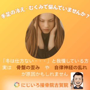#冷え性改善 #むくみ改善 #骨盤矯正 #自律神経 #内臓の冷え #巡り改善 #女性の悩み #冷え対策 #足のむくみ #東洋医学 #代謝改善 #冷え性 #古賀市 #にじいろ接骨院古賀院